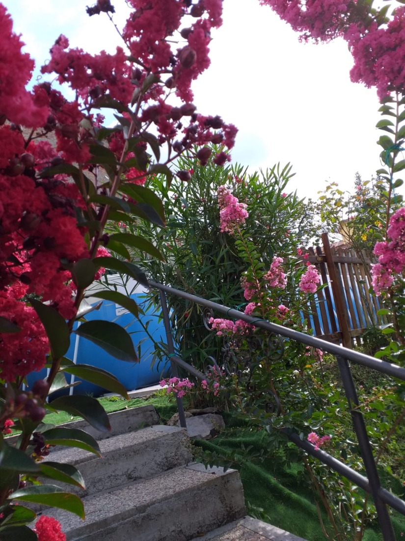 Adjacent fenced garden with a large above-ground pool. Ample parking is available in front of the property.
