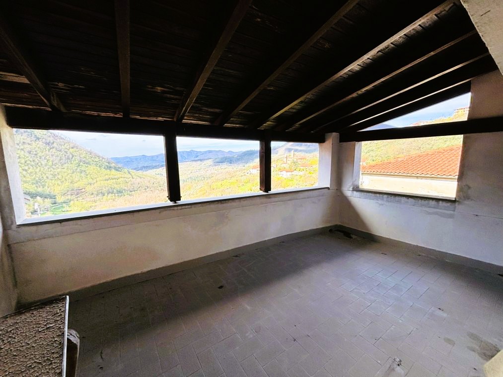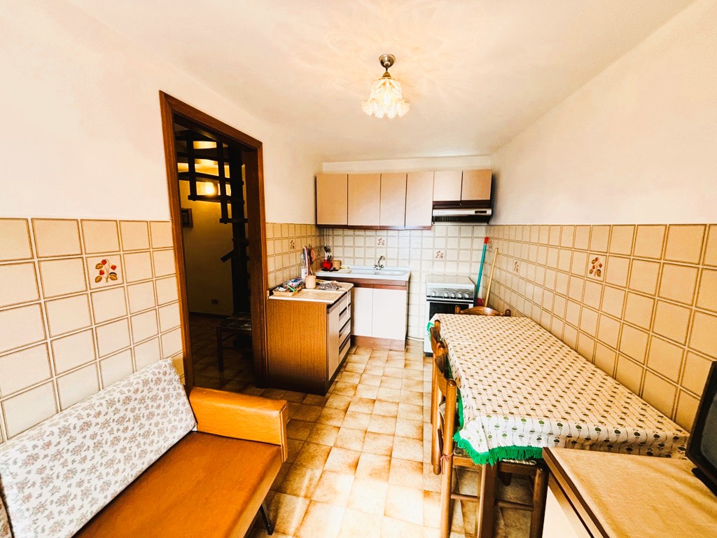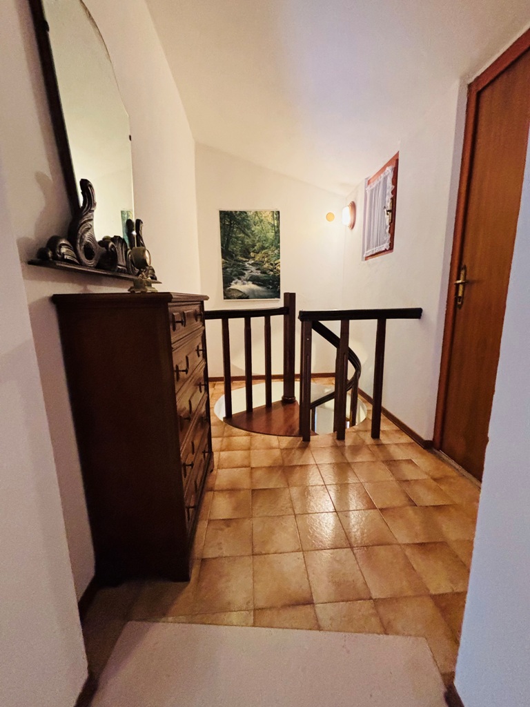 Composta da due cantine al piano seminterrato ; soggiorno con camino , cucina e bagno al piano terra ; tramite scala a chiocciola interna si accede al primo piano composto da due camere, balcone e ampio terrazzo panoramico coperto.